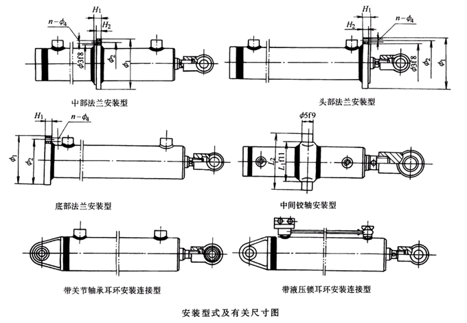 缸徑D/mm | 法蘭盤推薦尺寸/mm | 鉸軸推薦尺寸/mm |
